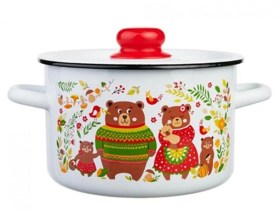 Кастрюля 2,9л. 1с16с/1 Мишки эмаль белая с рис.
