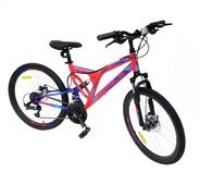 Велосипед 24" STELS Mustang MD двухподвес, рост 16", 18ск. красный неоновый/синий
