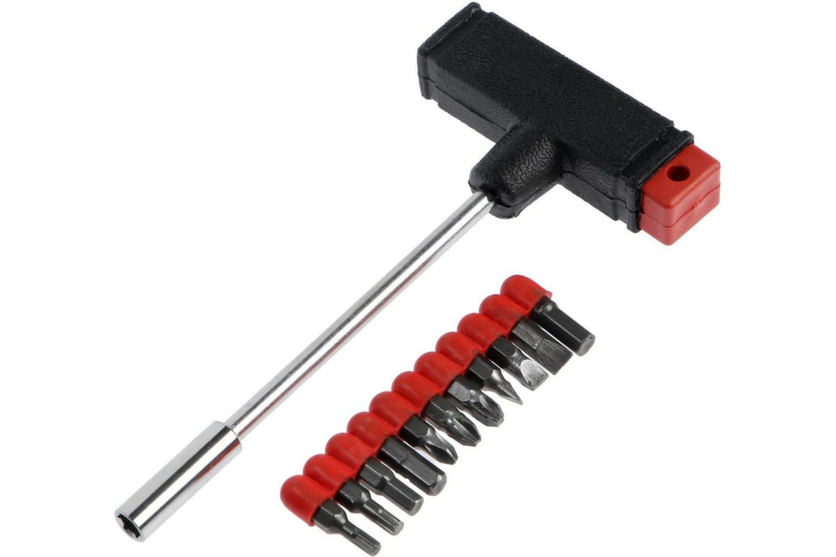 Отвертка и набор бит ЛОМ, Т-образный держатель, 11 пр.1720441