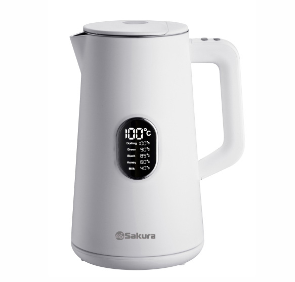 Чайник электрический SAKURA SA-2171W Premium объёмом 1.5 л оснащён дисковым нагревательным элементом и контроллером STRIX.