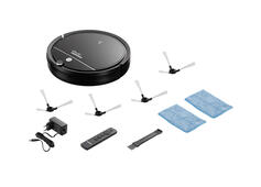 В комплектацию модели включены щетки и насадки для влажной и сухой уборки разных типов покрытий: Боковые вращающиеся щетки собирают пыль и сор с ламината и паркета, керамической плитки, кафеля, линолеума, ковровых покрытий с коротким ворсом. Щетки выступают за границы корпуса прибора, за счет чего эффективно очищают пространство вдоль плинтусов и стен и в углах комнат. Насадка из микрофибры предназначена для влажной уборки. Микрофибра отличается от других тканей особыми волокнами – собирая на себя пыль и другие загрязнения, микрофибровая насадка не оставляет разводов.