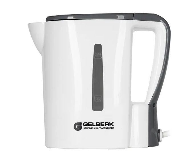 Электрочайник Gelberk GL-465 имеет белоснежно-серую расцветку. Корпус устройства выполнен из термостойкого пластика. Высокое качество материала изготовления исключает появления неприятного запаха при кипячении. В основе применяется нагревательный элемент открытого типа из алюминия. Объем составляет 0.5 л воды.