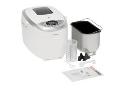 Одним из достоинств хлебопечи является наличие таймера отсрочки старта, достаточно загрузить все продукты, задать необходимое время выпечки и заниматься своими делами, свою выпечку вы получите в удобное для вас время. Следить за процессом можно при помощи окна контроля и даже выбрать подходящий цвет корочки. У данной модели есть функция поддержания температуры. Съемная крышка и антипригарное покрытие обеспечат легкий уход за устройством. Изготовлена хлебопечь из белого пластика, элегантный дизайн позволит гармонично вписаться в интерьер любой кухни.