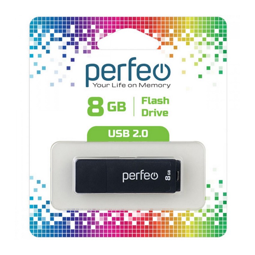 USB накопитель Perfeo C04 с колпачком, модель C04 объемом памяти 8GB, черного цвета имеет компактный размер.