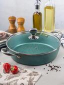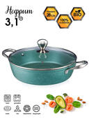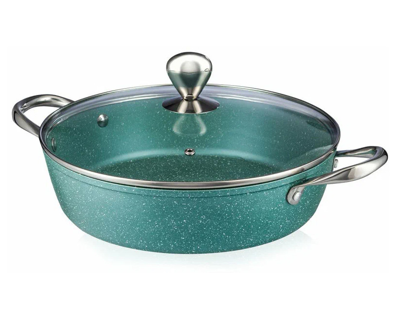 Сотейник WINNER WR-6049, диаметром 28см, внутри имеет антипригарное мраморное покрытие, выполнен из кованного алюминия. Крышка стеклянная. Подходит для использования на индукционной плите, а также для чистки в посудомоечной машине.