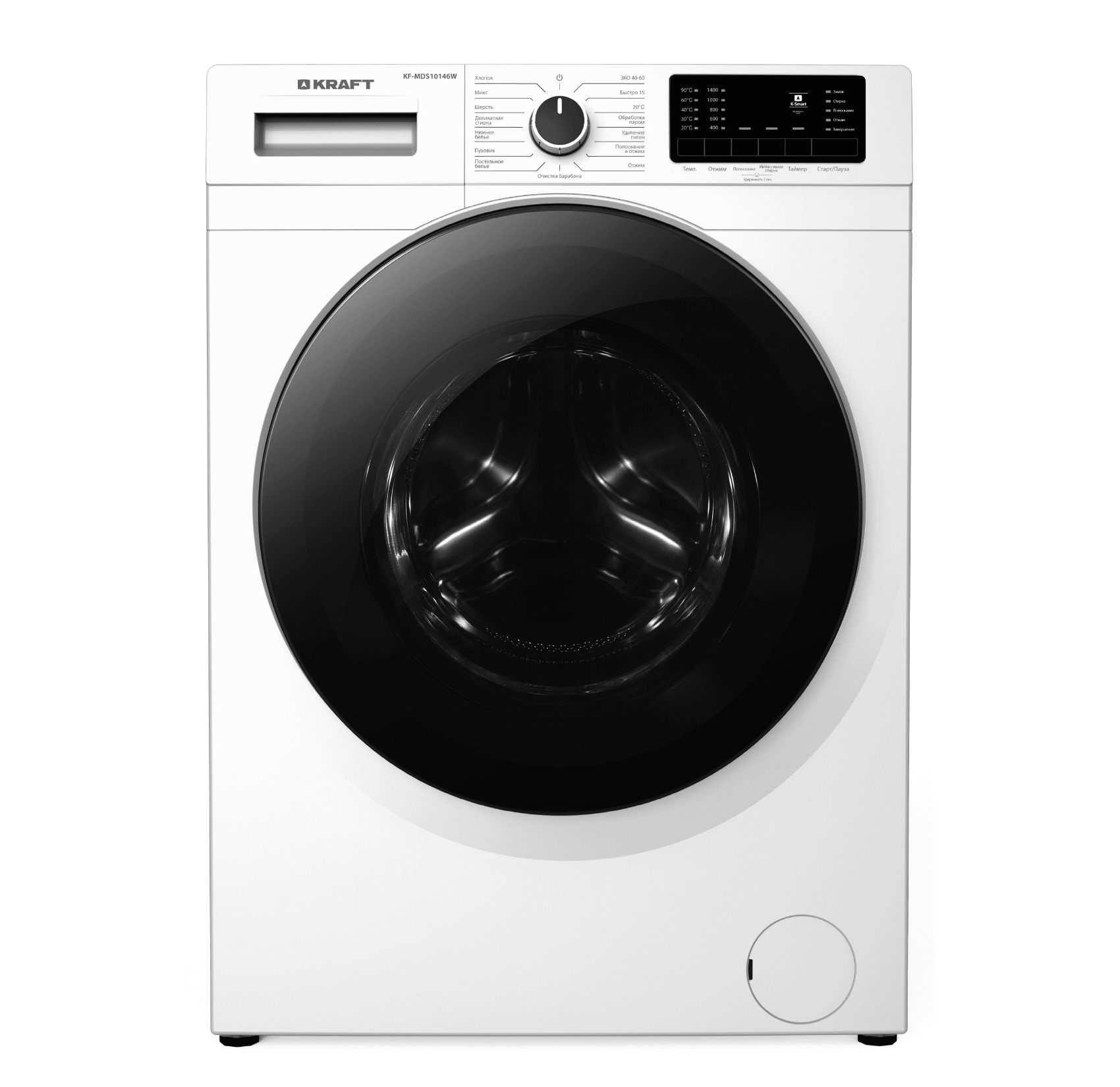 Стиральная машина KRAFT KF-MDS12146W с загрузкой белья до 12 кг оснащена 15 программами стирки, максимальная скорость отжима составляет 1400 оборотов в минуту. Модель обладает функцией отложенного старта, системой защиты от перелива и блокировкой от детей, автоматическим перераспределением белья, контролем пенообразования, а также обработкой пара.