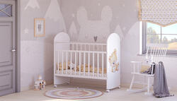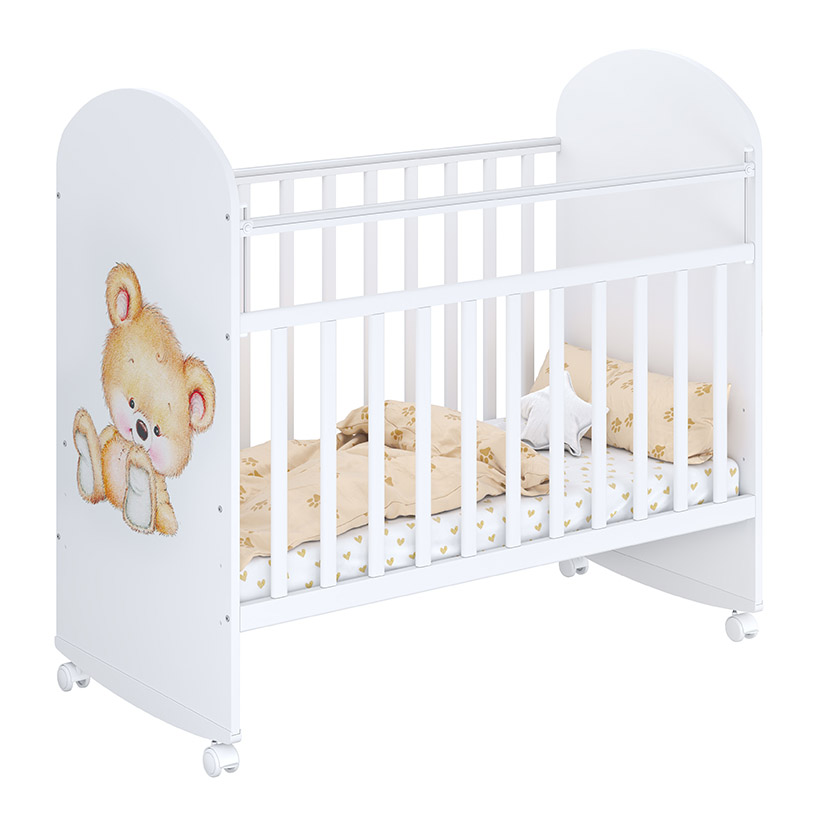 Кроватка детская Фея 701 Медвежонок кол.+кач., фигурн.спинка, дуб/белый