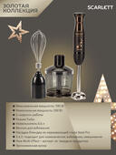 Блендер Scarlett SCARLETT SC-HB42F72 может похвастаться компактностью и удобством хранения. В разобранном виде он практически не занимает места, зато при необходимости собирается парой простых движений. Собери всю коллекцию Goldstars от Scarlett и преврати кухню в мастерскую идеальных блюд!
