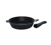 Сковорода чугунная литая со съёмной бакелитовой ручкой. Чугунная сковорода не выделяет токсичных веществ, обладает высокой теплоемкостью, долговечна. Сковорода идеальна для приготовления жаренных, тушенных блюд. Тепло распределяется равномерно по сковороде, поэтому пища прожаривается равномерно, быстро. Сняв ручку, сковороду можно использовать в духовке, как форму для запекания. Подходит для всех видов плит.