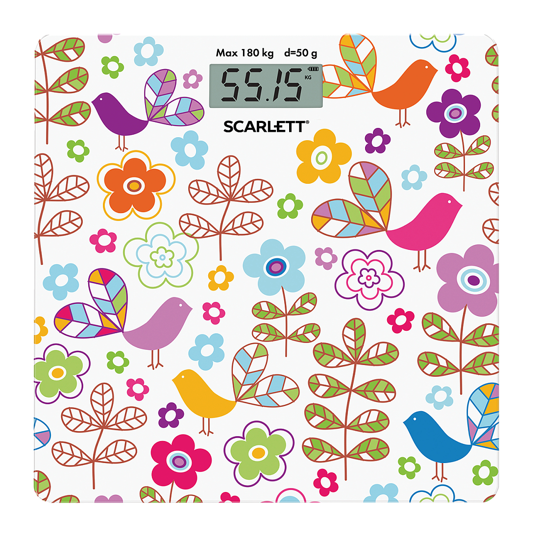 Автоматическое включение и выключение позаботятся об экономном расходе заряда батареи. Индикатор перегрузки и индикатор батареи обеспечат комфортную эксплуатацию. Большой жидкокристаллический дисплей делает эксплуатацию весов комфортнее. Прорезиненные ножки обеспечивают дополнительную устойчивость и предотвращают скольжение. А приятное цветовое решение и яркая композиция позволят прибору не только вписаться в любой интерьер, но и радовать глаз каждый день.