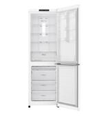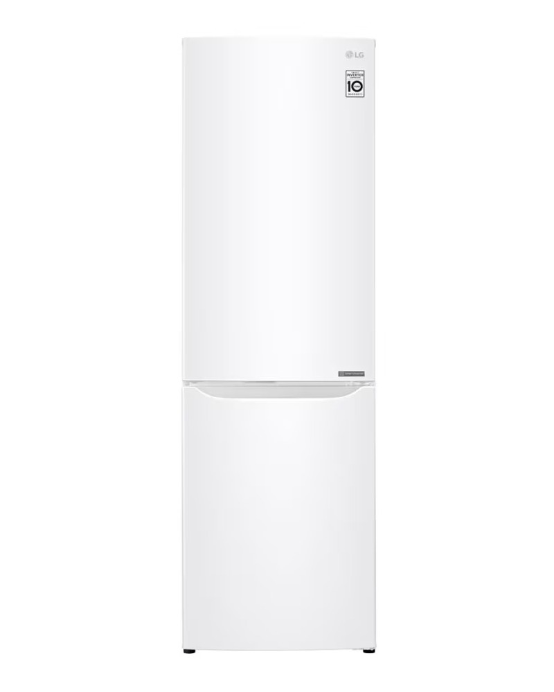 Классический белый двухкамерный холодильник LG GA-B419SWJL с морозильником, расположенным в нижней части. Холодильник имеет следующие габариты: