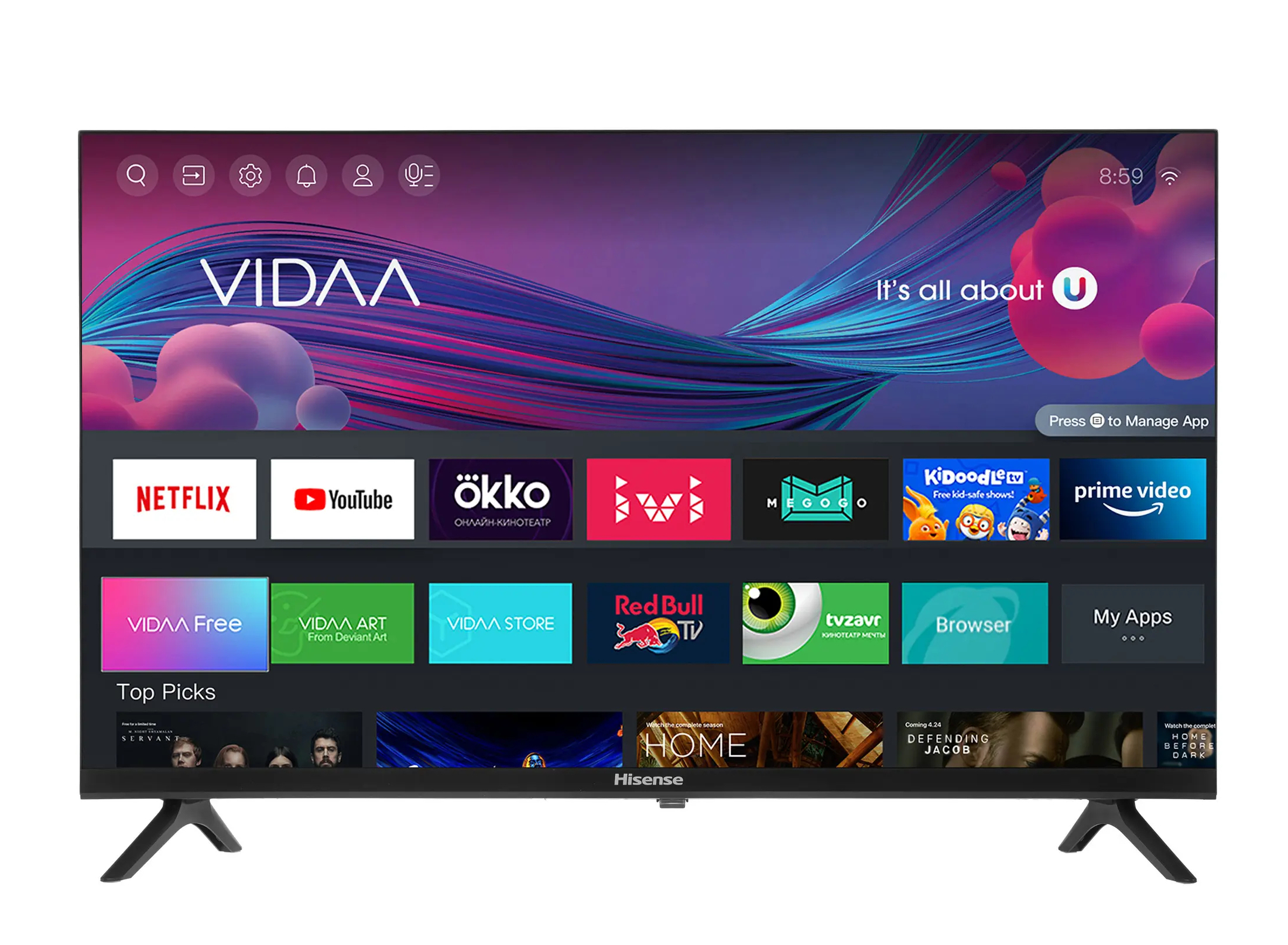 "Умная" операционная система VIDAA — это быстрая и простая интеллектуальная система, которая сокращает время запуска телевизора и обеспечивает быстрый доступ к приложениям, чтобы вы получали максимум удовольствия от развлечений.
