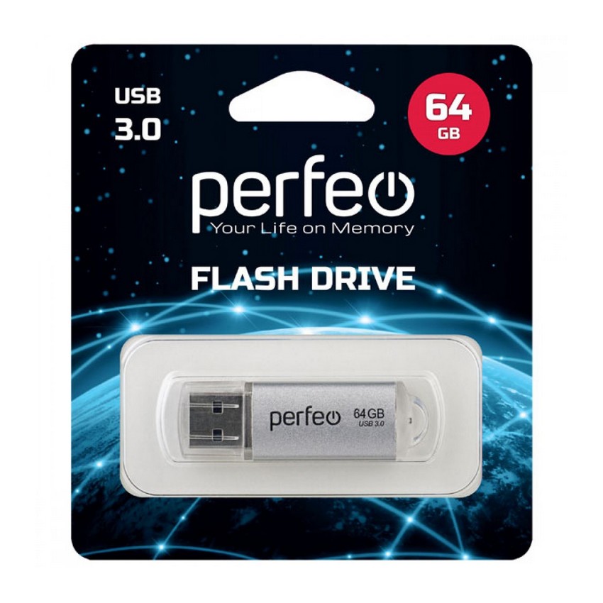 USB 3.0 накопитель 64Gb Perfeo C14 Silver