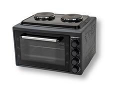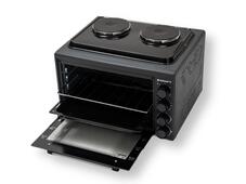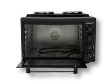 Электрическая духовка Kraft KF-MOHP3800DGR в тёмно-сером цвете объемом 38 литра. Мощность мини-печи составляет 1500 Вт, что обеспечивает быстрый нагрев. Сверху электрическая духовка оборудована двумя конфорками, мощность каждой составляет 1000 Вт. В комплект входит глубокий прямоугольный противень и решетка.
