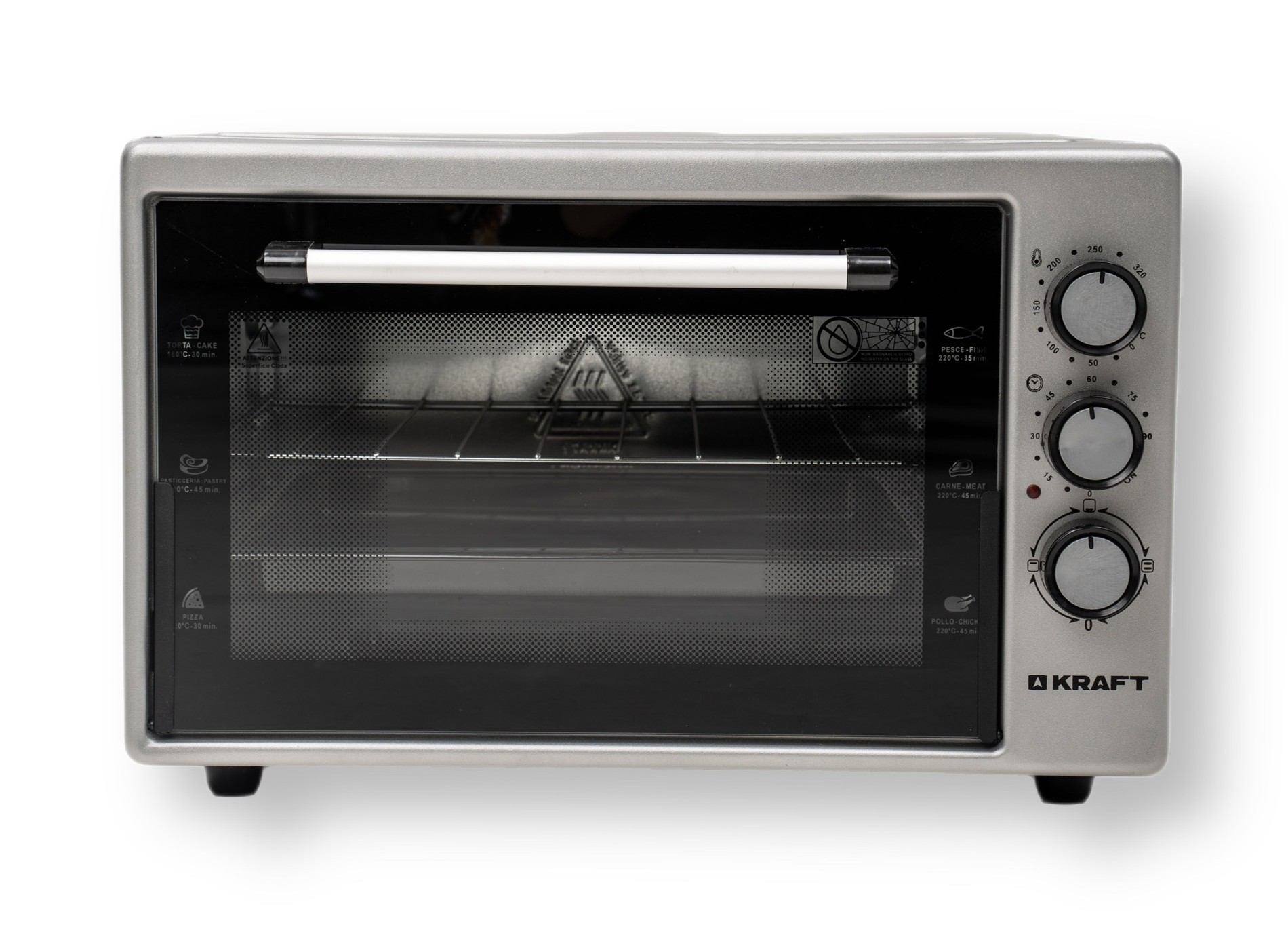Электрическая духовка Kraft KF-MO3801GR выполнена в сером металлическом корпусе и имеет внутреннюю камеру объемом 38 л, позволяя готовить различные блюда быстро и удобно. В печи предусмотрено 3 стандартных режима нагрева – нижний, верхний и двухсторонний. Температура приготовления блюд регулируется в диапазоне от 50 °C до 320 °C. Также имеется таймер обратного отсчета на 90 минут.