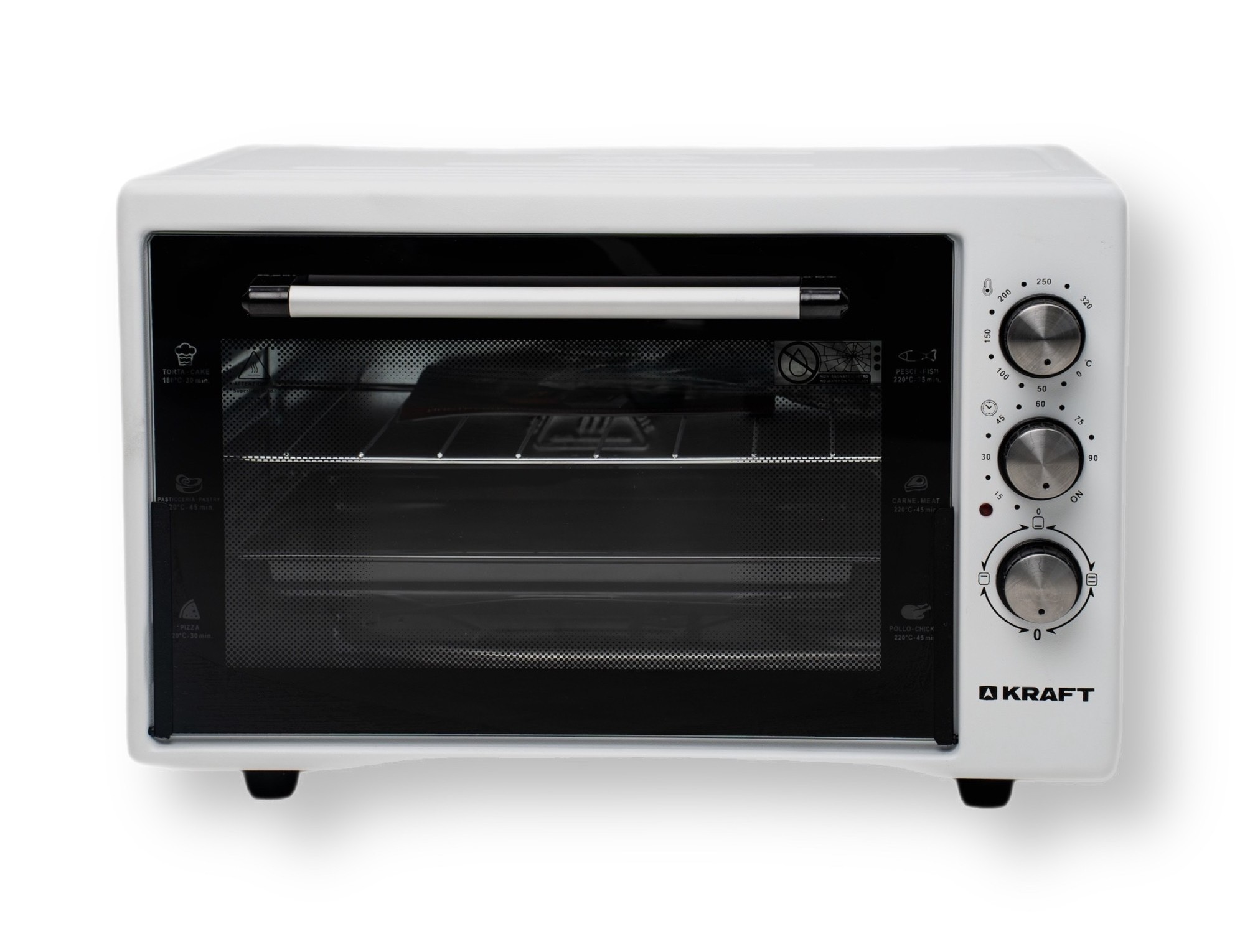 Электрическая духовка Kraft KF-MO3801W выполнена в белом металлическом корпусе и имеет внутреннюю камеру объемом 38 л, позволяя готовить различные блюда быстро и удобно. В печи предусмотрено 3 стандартных режима нагрева – нижний, верхний и двухсторонний. Температура приготовления блюд регулируется в диапазоне от 50 °C до 320 °C. Также имеется таймер обратного отсчета на 90 минут.