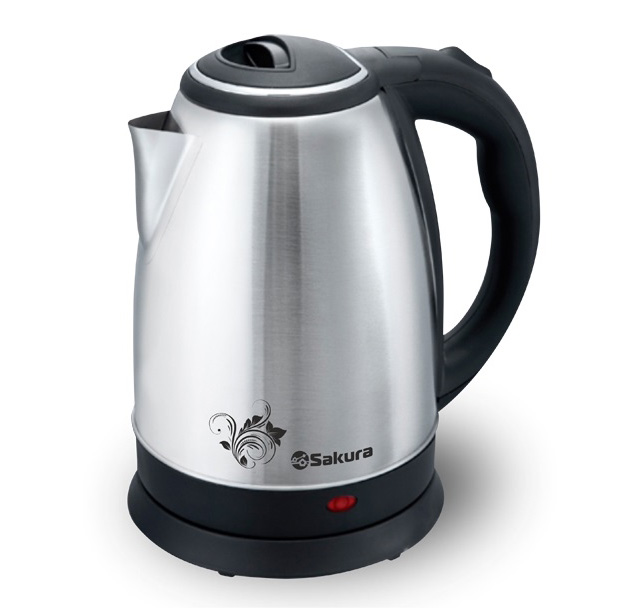 Электрический чайник SAKURA SA-2134S PROMO имеет мощность 1800Вт , благодаря чему обеспечивается быстрое закипание воды. Прибор выполнен в серебристом корпусе из нержавеющей стали с применением высококачественного пластика.
