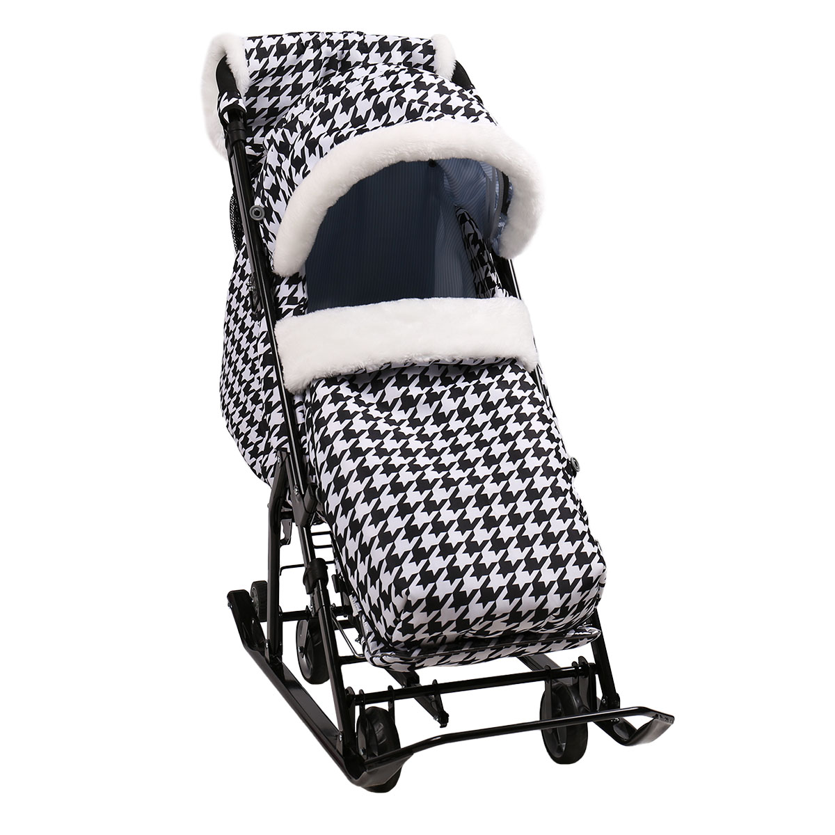 Санки-коляска Ника детям НД7-5/1 гусиная лапка ч/б с мятным