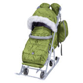 Санки-коляска Ника детям НД7-5SK/3 оливковый (черный каркас)