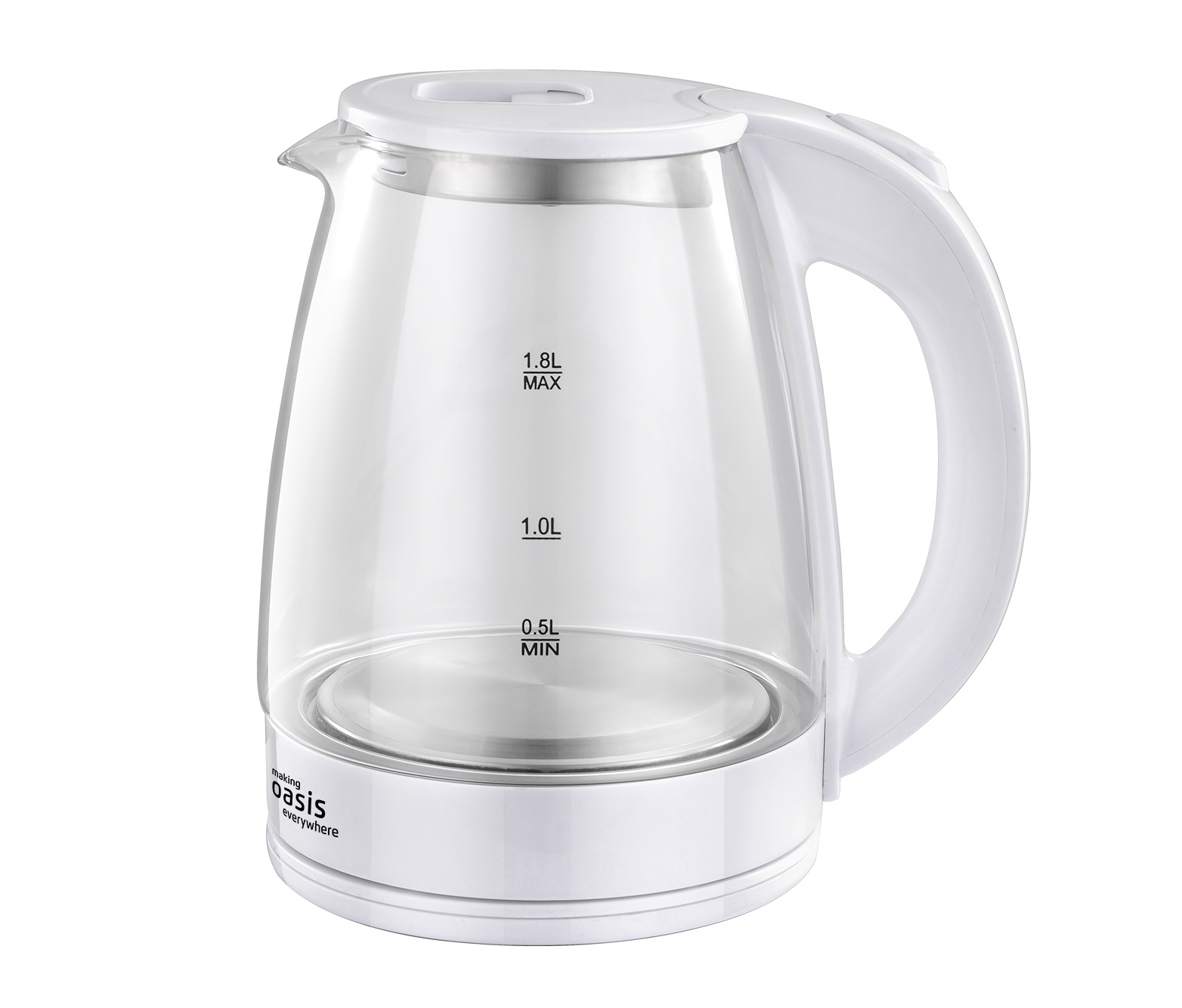 Корпус чайника Oasis everywhere K-8GW сделан из высокопрочного термоустойчивого стекла. Стекло это один из самых экологичных и гигиеничных материалов, который идеален для приготовления напитков. Термостойкое стекло, примененное в чайнике Oasis everywhere K-8GW, характеризуется устойчивостью к царапинам и максимальной прозрачностью.