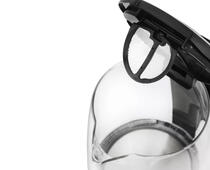 Чайник имеет большое горлышко, что облегчает доступ внутрь при мытье, а также фильтр-сетку для защиты от накипи.