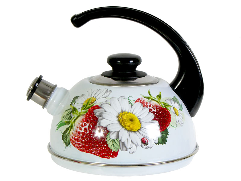 Чайник газовый 2,5л. Т04/25/03/05 Клубника с ромашкой, белый с рис., эмаль