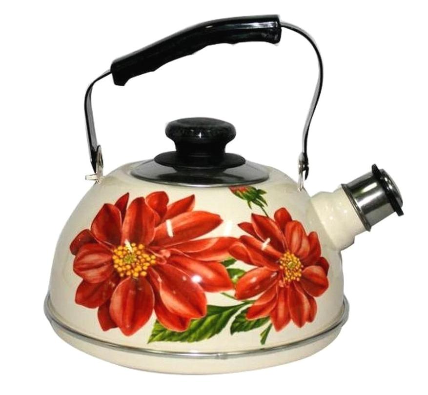 Чайник газовый 2,5л. ТМ04/25/04/09 Цветы слон.кость, эмаль