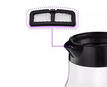 В носике чайника расположен нейлоновый фильтр от накипи, который задерживает частички накипи и предотвращает их попадание в чашку.