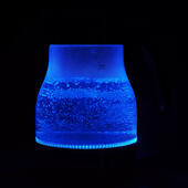 При включении чайника по периметру дна загорается подсветка чайника, которая является индикатором работы. Подсветка голубого цвета поможет определить количество воды в чайнике даже в темноте.