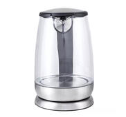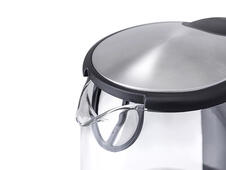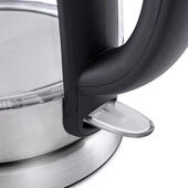 Корпус чайника Kitfort KT-619 выполнен из стекла, а крышка и подставка - из сочетания пластмассы и нержавеющей стали. Мерная шкала нанесена на прозрачную часть корпуса. Ручка чайника пластиковая, не нагревается и удобно лежит в руке.