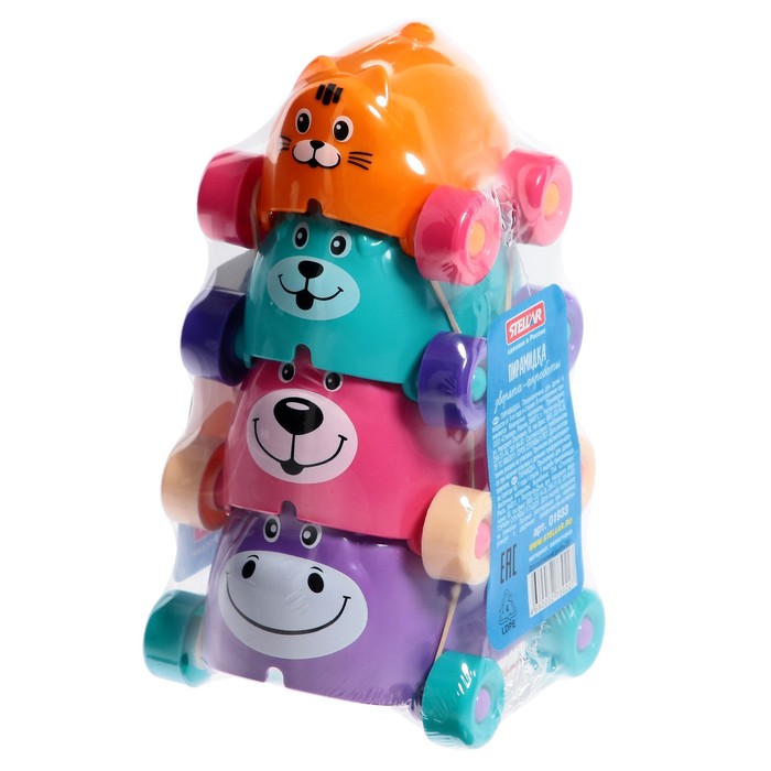 *Пирамидка 4 машинки-игрушки "Зверята-акробаты" Стеллар 01933
