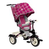 Велосипед 3-х кол. НИКА ВДН5/1 крыша-капюшон, родит.вело-ручка, пласт.кол., вишнёвый в клетку
