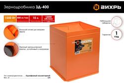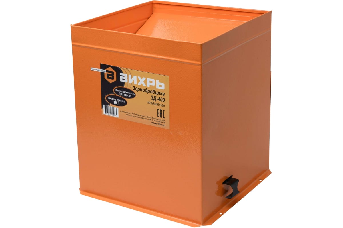 Зернодробилка Вихрь ЗД-400 с показателем производительности 400 кг/час обеспечивает высокую эффективность измельчения всех видов сухого фуражного зерна и позволяет готовить корма для животных. Ножевой блок с вращением режущего механизма 12000 об/мин быстро перерабатывает зерно на мелкие частицы, после чего зерно проходит через сито. В данной модели используется загрузочная камера вместимостью 10 литров. Благодаря металлической конструкции с окрашенным защитным покрытием зернодробилка Вихрь ЗД-400 устойчива к повреждениям и прослужит длительное время.