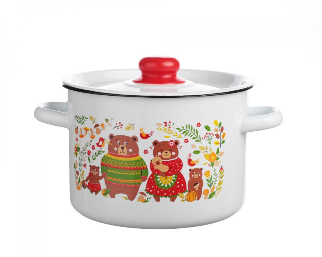 Кастрюля 2,9л. 1с17с Мишки эмаль белая с рис.