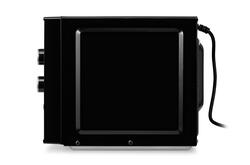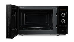 Микроволновка Hyundai HYM-D3032 сделана в минималистичном хайтек-дизайне в чёрном исполнении. Настройка режимов тепловой обработки происходит с помощью передней панели. На ней у прибора расположен яркий ЖК-экран для визуализации параметров. Под ним находится колесо переключения мощностей. Устройство может автоматически размораживать пищу, готовить блюда согласно имеющимися во встроенном меню программам, а также запускаться по отложенному таймеру.