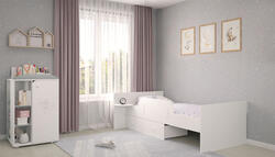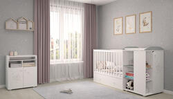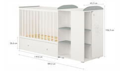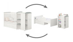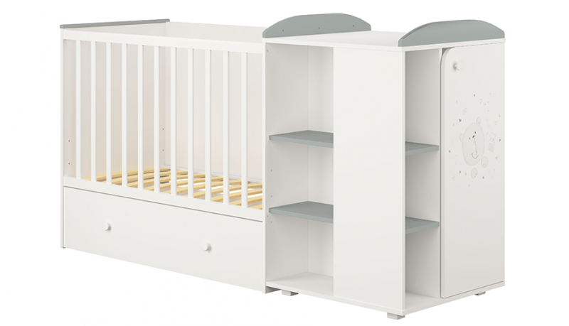 Кровать трансформер Polini kids French 900 Teddy 3 в1 с комодом, белый/серый