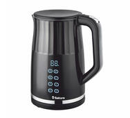 В данной модели чайника SAKURA SA-2173DBK есть предустановленные режимы температуры – 70, 80, 90 градусов (помимо кипячения 100 градусов) + свободный режим нагрева. Вы можете воспользоваться ими для быстрого включения подогрева до нужной температуры или для поддержания определенной температуры воды. Прибор выполнен в 2х-слойном корпусе (стеклянная колба и пластик сверху), имеет большой LED дисплей, сенсорное управление с подсветкой, звуковой сигнал и поддержание температуры в течение 2 часов.
