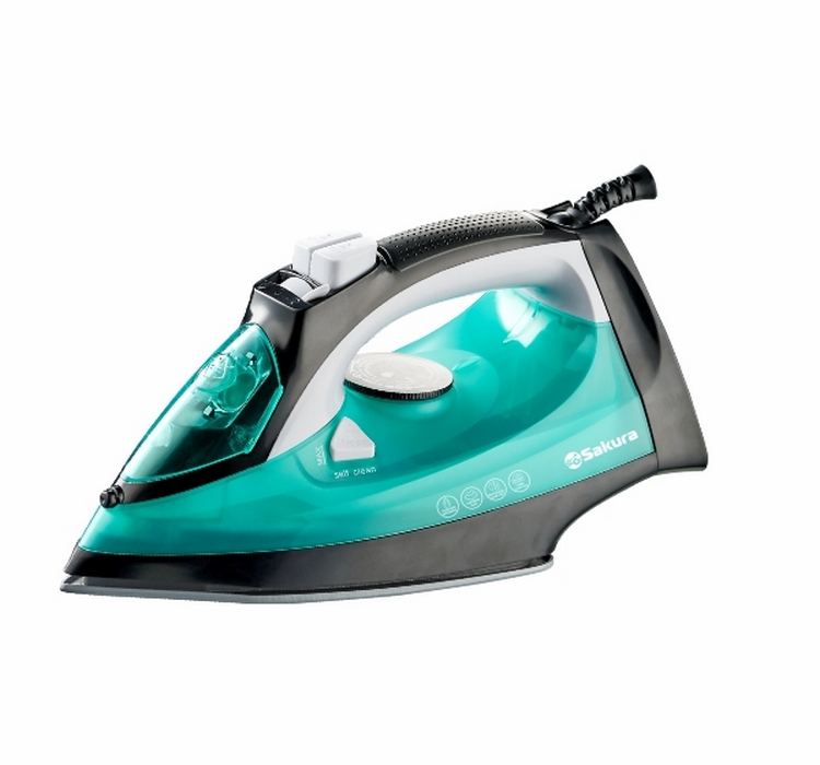 Утюг Sakura SA-3059CGR в чёрно-бирюзовом цвете мощностью 2400 Вт выполнен в современном стильном дизайне, который будет радовать глаз во время процесса глажки белья.