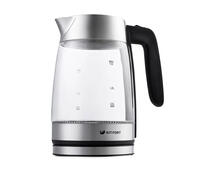 Модель изготовлена из жаропрочного боросиликатного стекла, а крышка и подставка - из сочетания высококачественного пластика и металла.