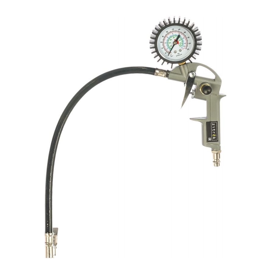 Пистолет для накачки с манометром Zitrek TG-62 012-2118 используется в мастерских или автосервисах для накачивания автомобильных шин воздухом.