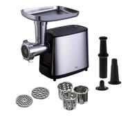 В комплект мясорубки входят решетки из нержавеющей стали для разного помола; насадки для домашних кеббе и колбасок.