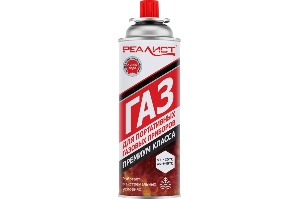 Газ для портативных плит и газовых горелок баллон 520мл. REALIST всесезонный