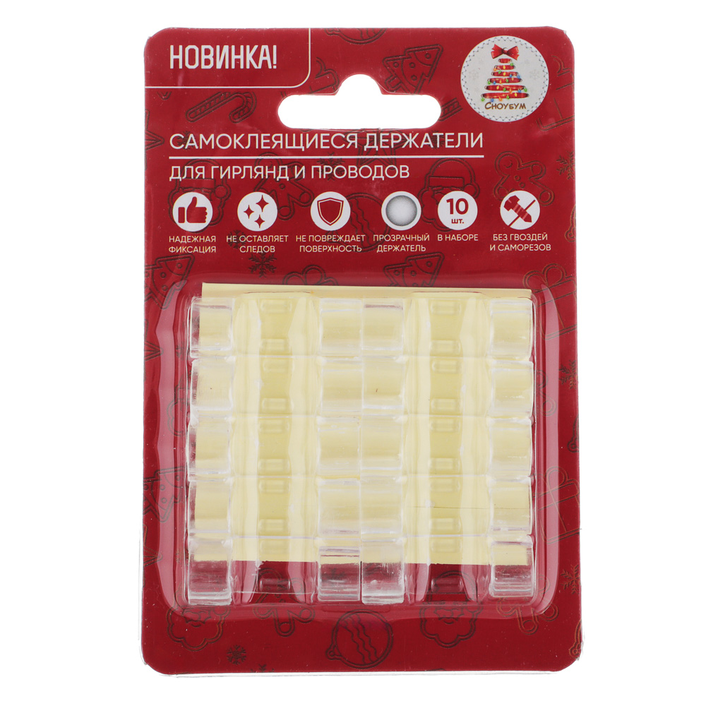 Держатели для гирлянд и проводов СНОУ БУМ самоклеящиеся 10шт, 22х8мм, d4мм, ABS 381-461