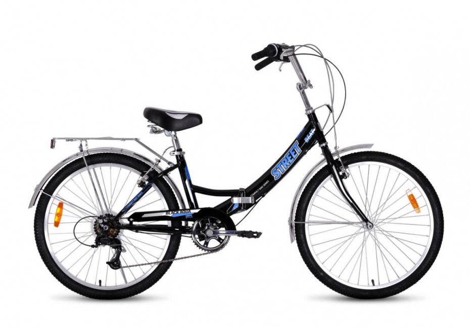 Велосипед 24" BLACK AQUA Street Beat 1421 складная рама, рост 16", 6ск., чёрный/голубой