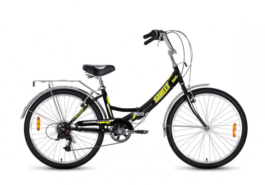 Велосипед 24" BLACK AQUA Street Beat 1421 складная рама, рост 16", 6ск., чёрный/лимонный
