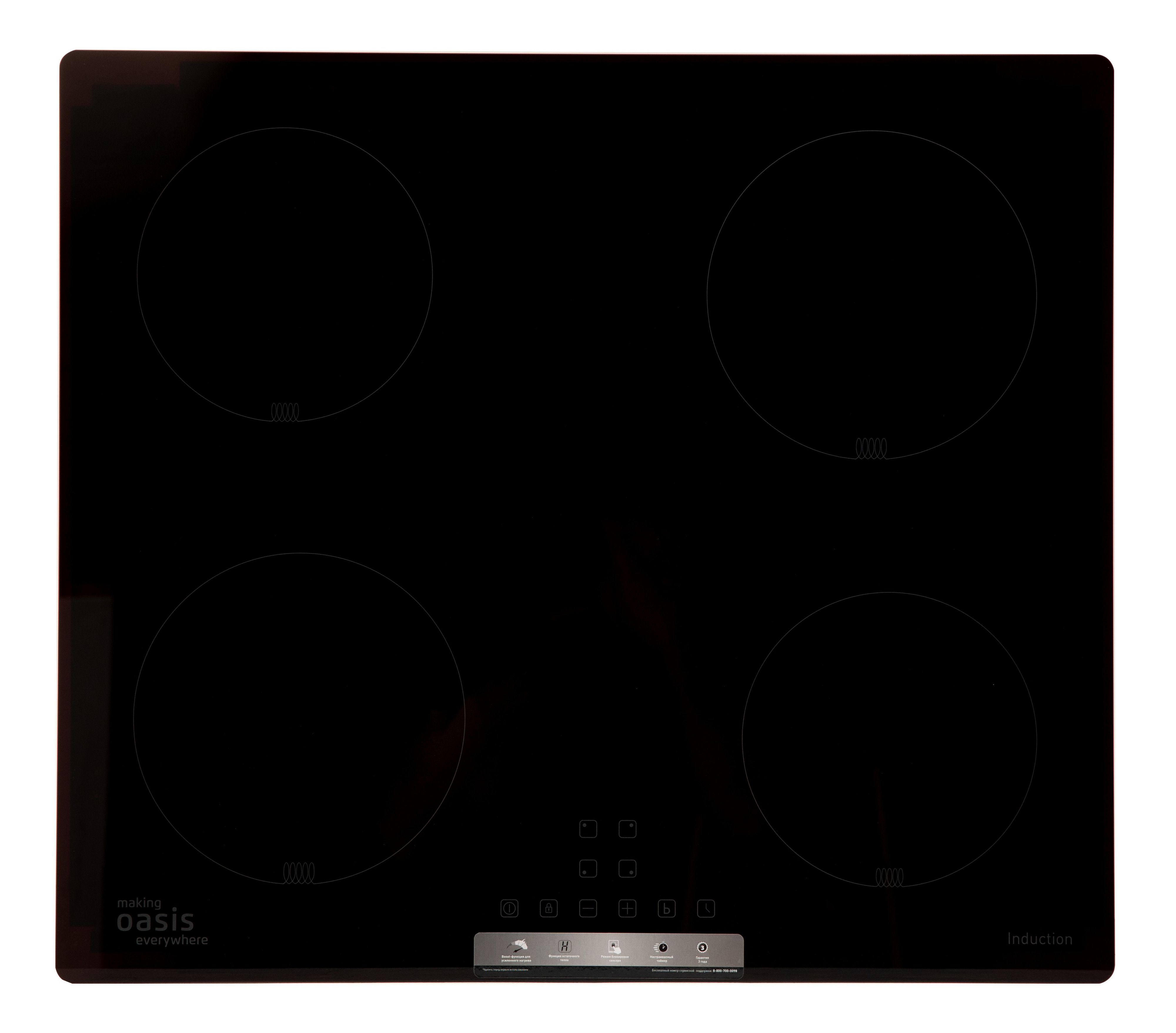 Электрическая варочная панель making Oasis everywhere P-IBS имеет 4 индукционные конфорки и оснащена сенсорным управлением с настраиваемым таймером, что позволяет комфортно и легко работать с прибором. Прочный стеклокерамический материал и надёжная система безопасности с самодиагностикой дают возможность пользоваться варочной панелью на протяжении долгого срока службы.