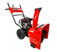 Снегоуборочная машина оснащена мощным бензиновым двигателем объёмом 212см3. Мотор запускается при помощи ручного стартера. Бензин заливается во встроенный бак объемом 3,6 л. Предусмотрены 6 передних и 2 задних скорости. Большие 13-дюймовые колеса обеспечивают высокую проходимость техники.