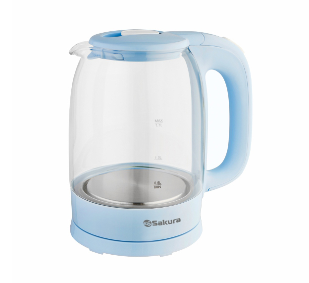 Электрический чайник SAKURA SA-2740BL обладает мощностью 2200 Вт и оптимальным объемом 1.7 л. Корпус из высококачественного термостойкого стекла не изменяет полезных свойств воды и в сочетании с внутренней подсветкой позволяет наблюдать за завораживающим процессом кипячения.