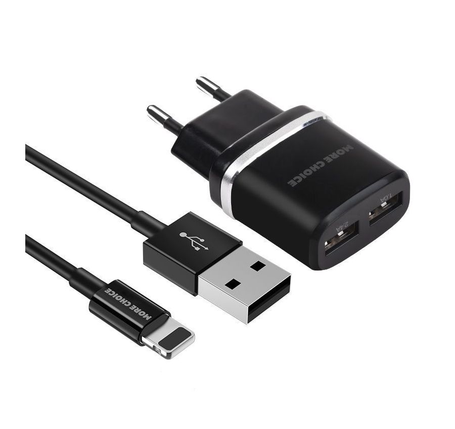 СЗУ 2400mAh More choice 2USB + Lightning 8-pin NC22i black