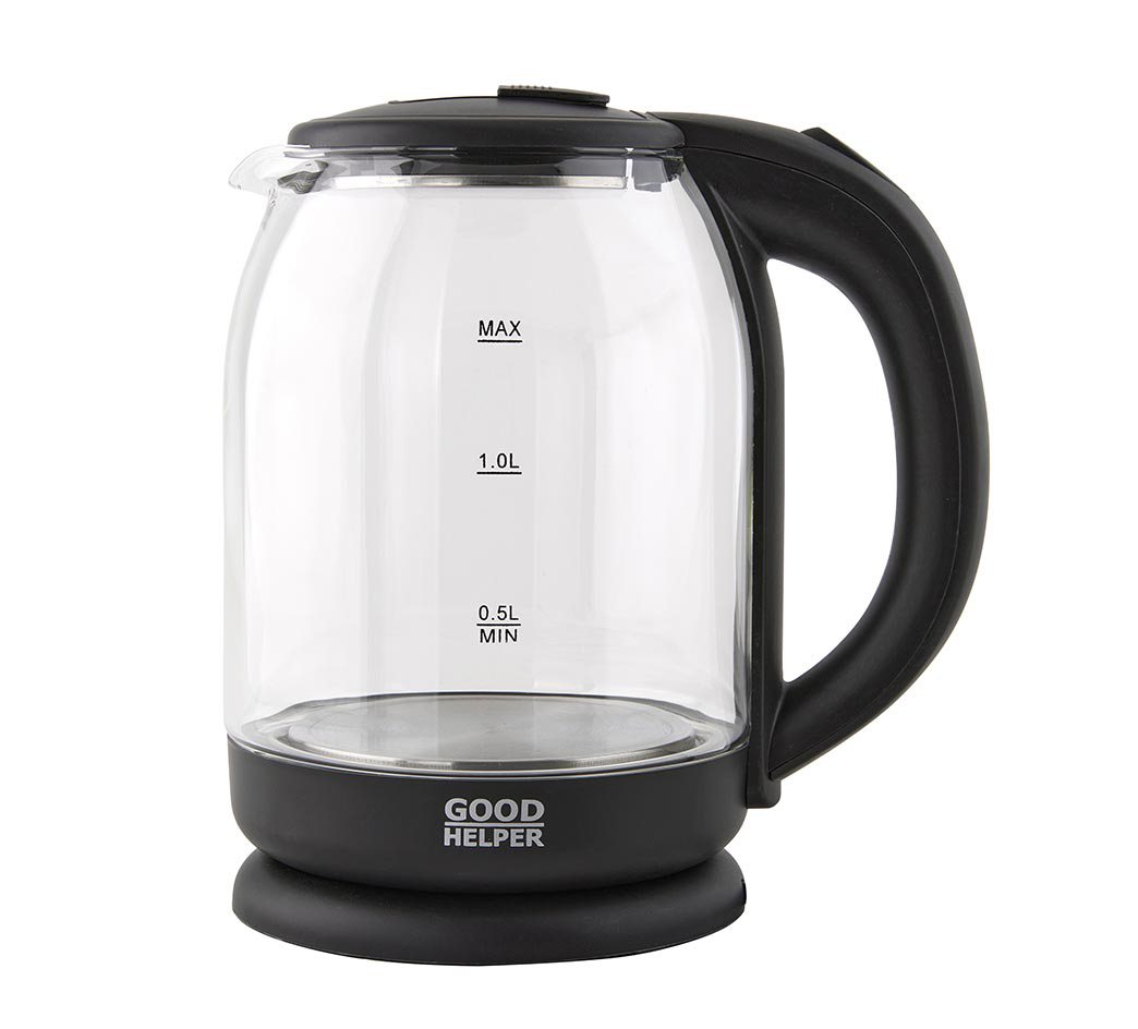 Goodhelper позаботились об оптимальных решениях: ручка и крышка чайника сделаны из устойчивого к повреждениям ABS-пластика. Чайник Goodhelper KG-18B10 сохранит форму даже при падении, не скользит в руках и не нагревается. Чаша выполнена из жаропрочного стекла, на которое нанесена разметка для определения объема воды внутри. Корпус чайника вращается на 360° - так им удобнее пользоваться, особенно если воду нужно разогреть срочно и нет времени "прицеливаться", чтобы правильно поставить чайник на подставку.